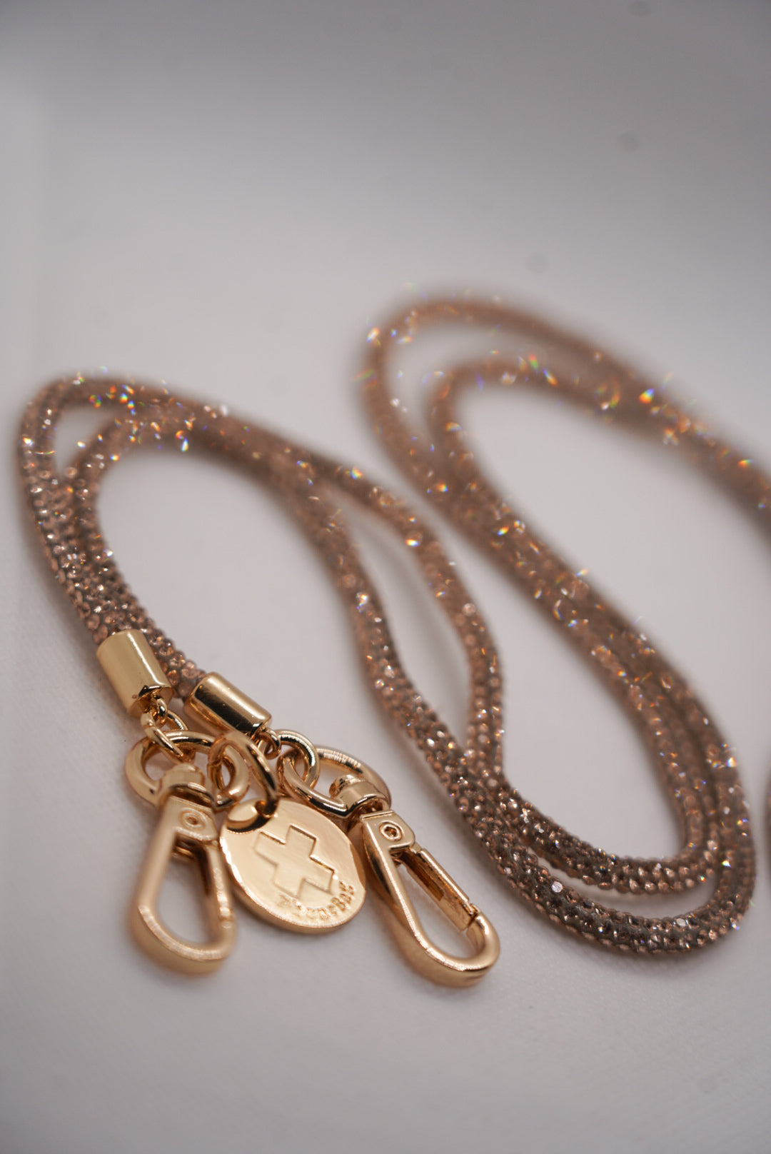 Alça arábia em corda com strass bronze. Chic e versátil para várias ocasiões, perfeita para deixar as mãos livres. Acompanha capa verde militar para Iphone acoplável para alças.