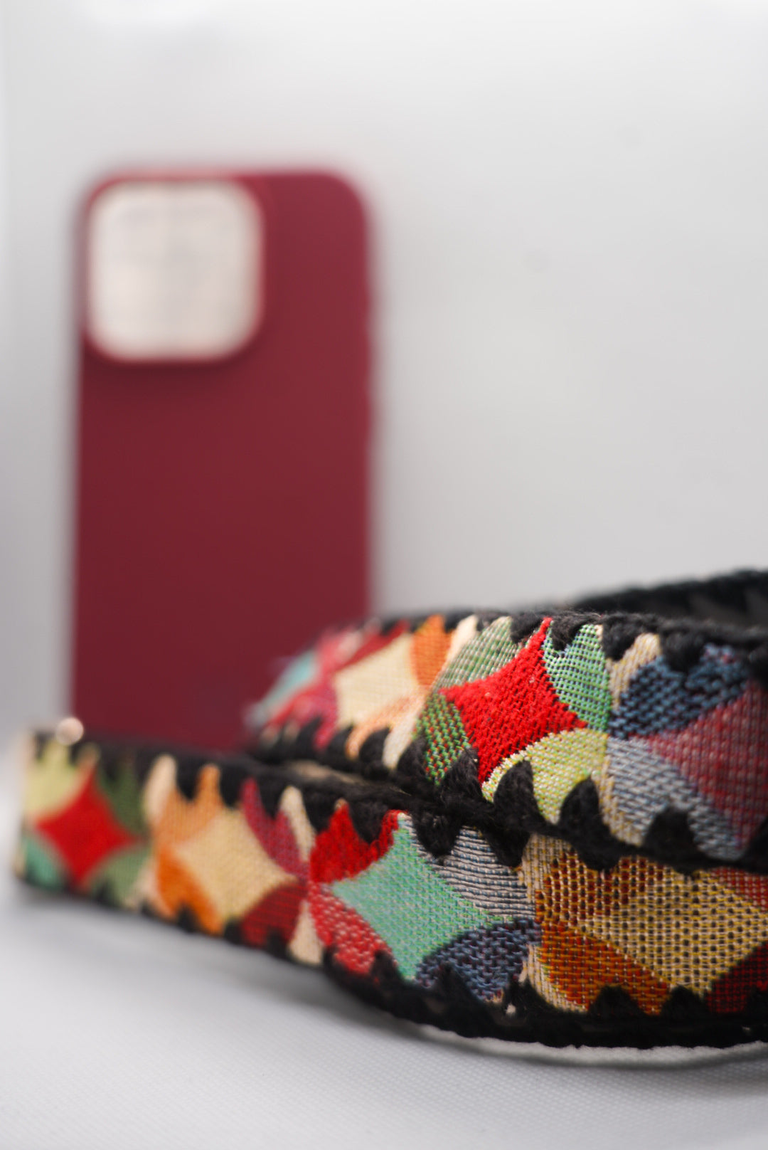 Alça para celular Leblon vinho e preto + Capa vinho acopláve à alça compatível com Iphone