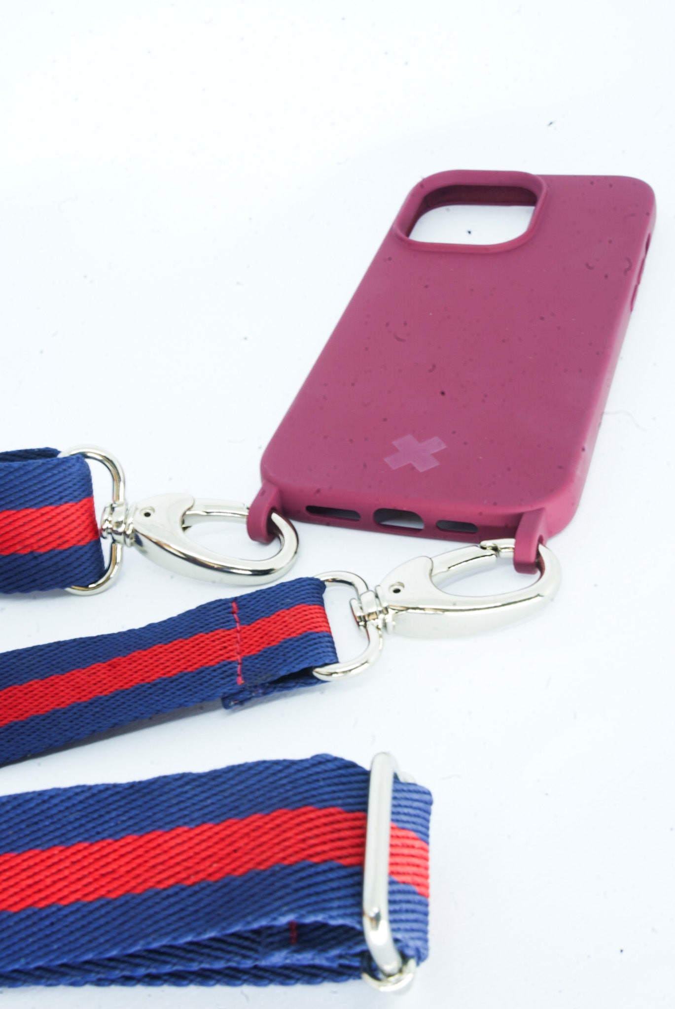 Alça listrada em poliester com mosquetões em metal prateado, possui regulagem para ser usada à tiracolo ou na transversal na medida que preferir.