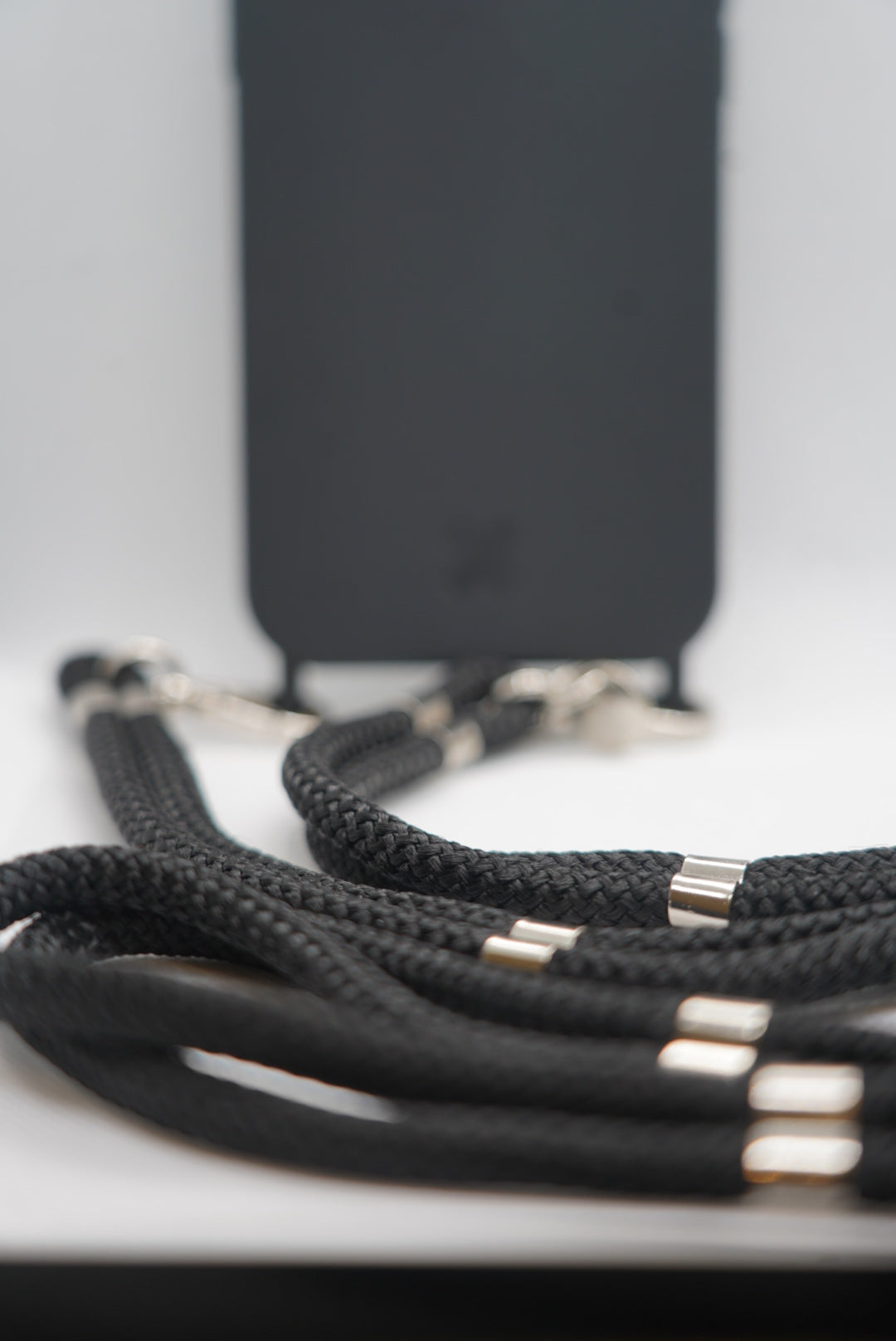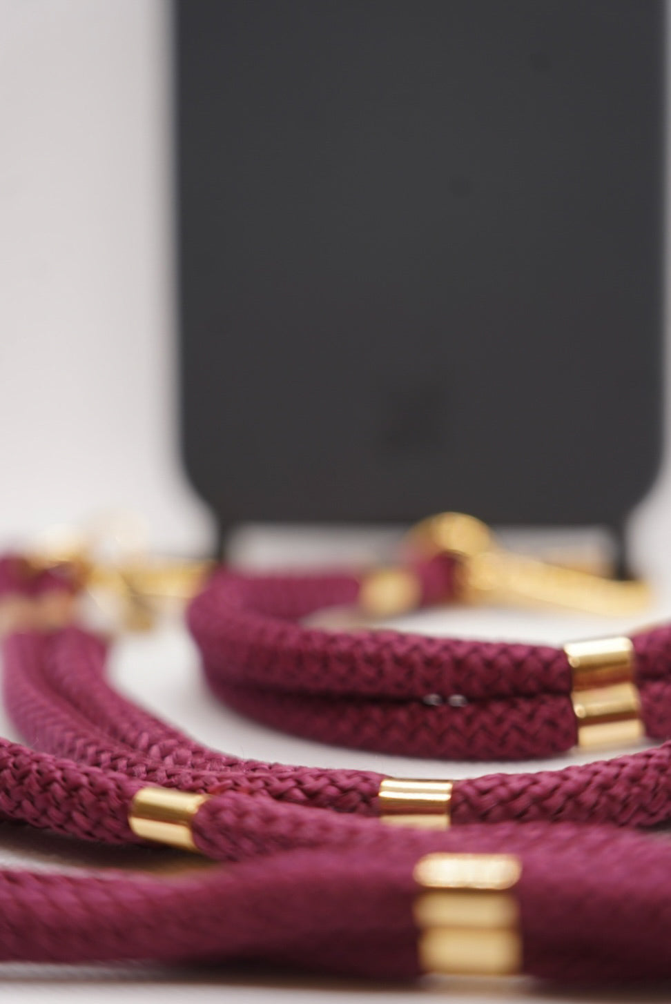 Alça de corda dupla com passadores e mosquetões em metal dourado ou prateado. Pode ser usada à tiracolo ou transversal, ótima opção em momentos em que as mãos devem estar livres.
