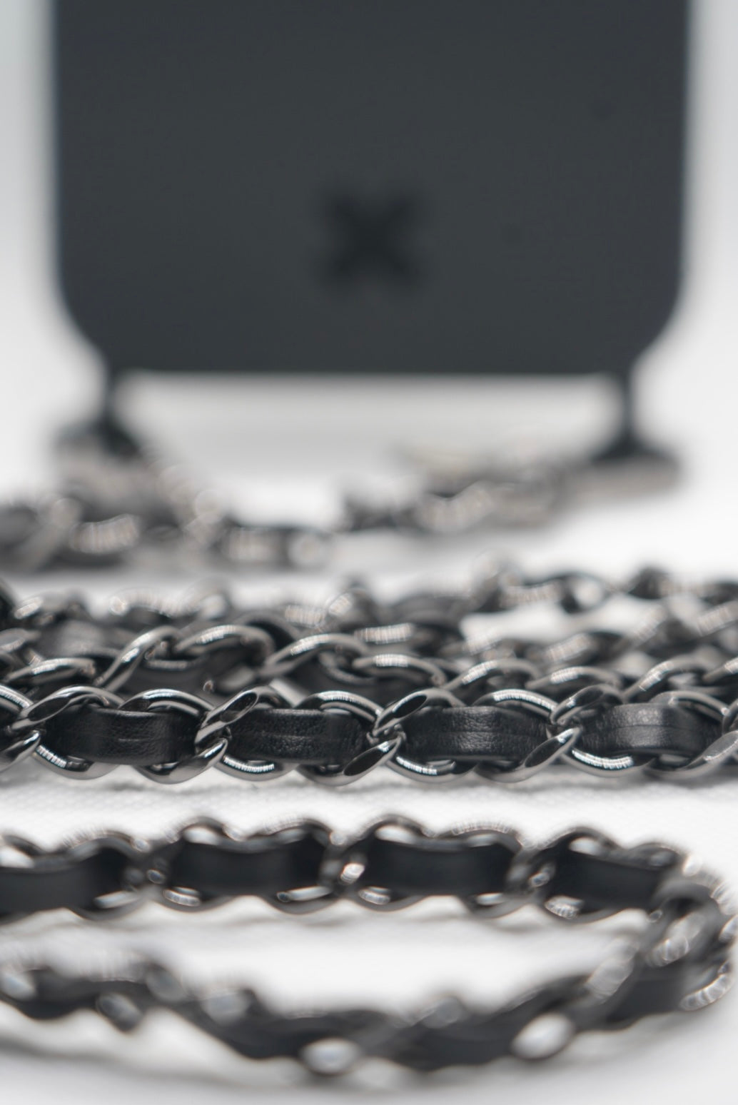 Alça Paris prateada (escolha a cor do couro) + Capa Cinza